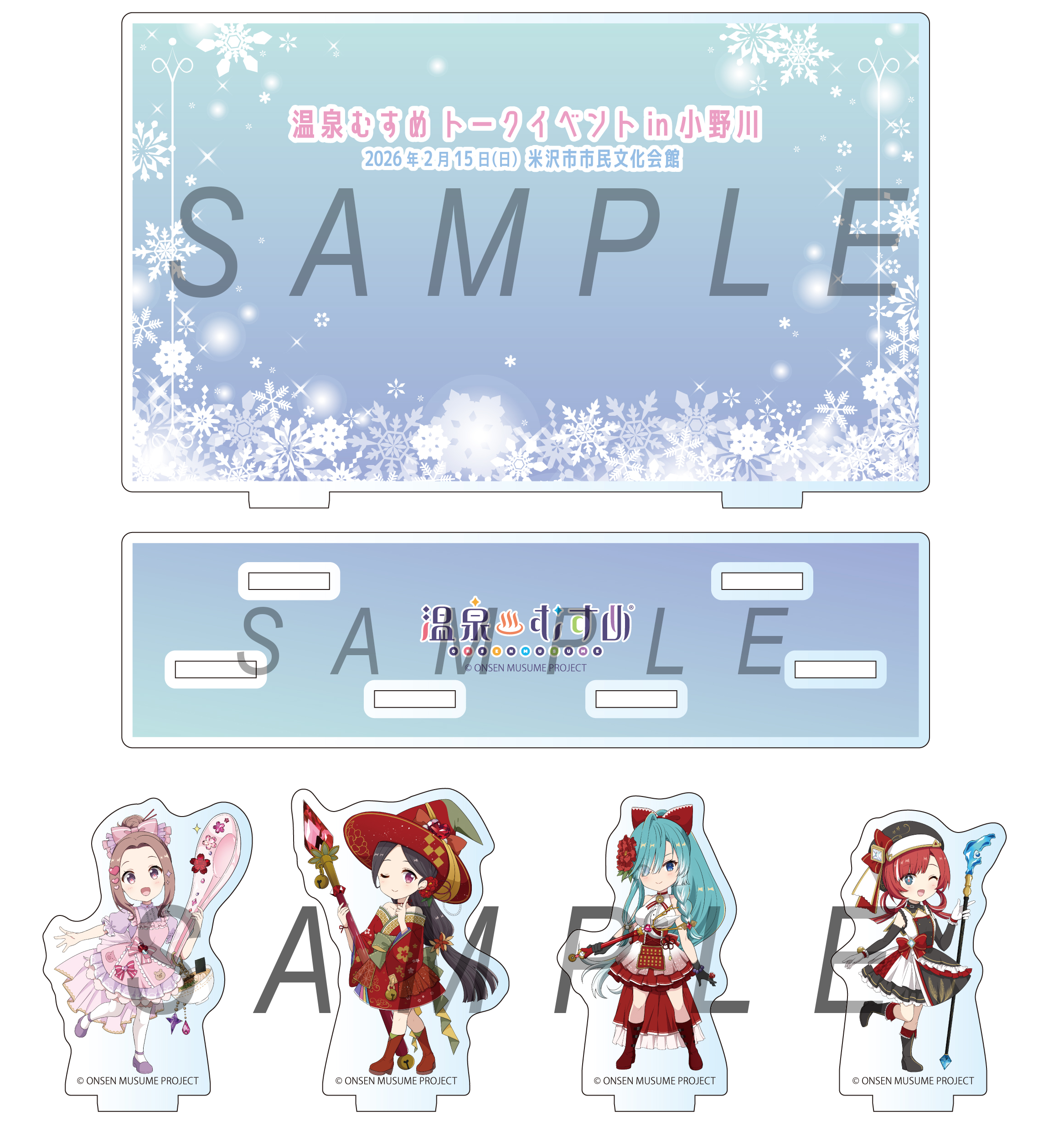 背景:H92mm×W150mm 台座:H40mm×W150mm 小野川小町:W60mm×H40mm 玉名満美:W58mm×H39mm 別所愛染:W59mm×H33mm 輪島かさね:W56mm×H33mm